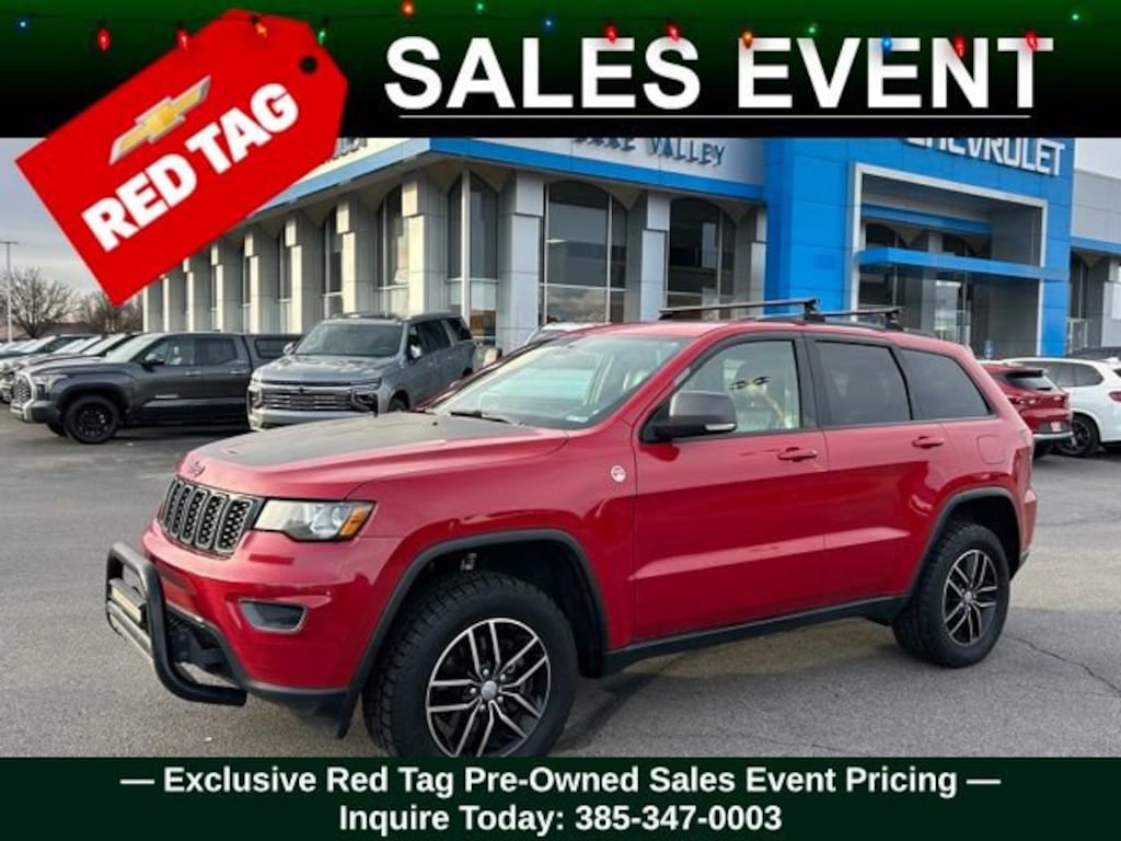 Turn every drive into something special with this Jeep Grand Cherokee from Salt Lake Valley Chevrolet! Designed for comfort, performance, and style, this vehicle comes fully equipped with modern technology and convenience features you’ll love. Plus, enjoy a $1,000 finance savings, already included in the sale price, when you finance through one of our trusted lending partners. If you’re shopping for used cars in Salt Lake City, or searching for the perfect SUV, truck, or sedan, this Jeep Grand Cherokee delivers the dependability and value you’re looking for. It’s the ideal match for your lifestyle - ready for everything from mountain adventures to city commutes. Visit Salt Lake Valley Chevrolet today and see why so many Utah drivers trust us for great deals on quality pre-owned vehicles. Explore our inventory online at www.slvchevy.com or call 801-969-8221 to schedule your test drive today! This impressive vehicle includes Quick Order Package 23J, 1 Year Trial (Registration Required), 1-Year SiriusXM Radio Service, 10 Speakers, 3.45 Rear Axle Ratio, 4-Wheel Disc Brakes, 5-Year SiriusXM Traffic Service, 5-Year SiriusXM Travel Link Service, 8.4 Touchscreen Display, ABS brakes, Air Conditioning, Alloy wheels, AM/FM radio: SiriusXM, Anti-whiplash front head restraints, Audio memory, Auto-dimming door mirrors, Auto-Dimming Rear-View Mirror, Auto-dimming Rear-View mirror, Auto-leveling suspension, Automatic temperature control, Brake assist, Bumpers: body-color, Compass, Delay-off headlights, Driver door bin, Driver vanity mirror, Dual front impact airbags, Dual front side impact airbags, Electronic Stability Control, Emergency communication system: Uconnect Access, Engine Oil Cooler, For Details Visit DriveUconnect.com, For More Info, Call 800-643-2112, Four wheel independent suspension, Front anti-roll bar, Front Bucket Seats, Front Center Armrest w/Storage, Front dual zone A/C, Front fog lights, Front reading lights, Fully automatic headlights, Garage door transmitter, GPS Antenna Input, GPS Navigation, HD Radio, Heated door mirrors, Heated front seats, Heated rear seats, Heated steering wheel, Illuminated entry, Instrument Cluster w/Off-Road Disp. Pages, Integrated Voice Command w/Bluetooth, Knee airbag, Leather Shift Knob, Low tire pressure warning, Manufacturer's Statement of Origin, Memory seat, Normal Duty Suspension - Increased Travel, Occupant sensing airbag, Outside temperature display, Overhead airbag, Overhead console, Panic alarm, ParkView Rear Back-Up Camera, Passenger door bin, Passenger vanity mirror, Power door mirrors, Power driver seat, Power Liftgate, Power passenger seat, Power steering, Power Sunroof, Power windows, Radio data system, Radio: Uconnect 3C Nav w/8.4 Display, Radio: Uconnect 3C w/8.4 Display, Rear anti-roll bar, Rear reading lights, Rear seat center armrest, Rear window defroster, Rear window wiper, Remote keyless entry, Roadside Assistance & 9-1-1 Call, Roof rack: rails only, Security system, SiriusXM Satellite Radio, SiriusXM Traffic, SiriusXM Travel Link, Speed control, Speed-Sensitive Wipers, Split folding rear seat, Spoiler, Steering wheel mounted audio controls, Tachometer, Telescoping steering wheel, Tilt steering wheel, Traction control, Trailhawk Leather/Suede Seats, Trip computer, Turn signal indicator mirrors, Uconnect Access, Variably intermittent wipers, Ventilated front seats, and Wheels: 18 x 8.0 Off Road Aluminum, offering everything you need for your next adventure.