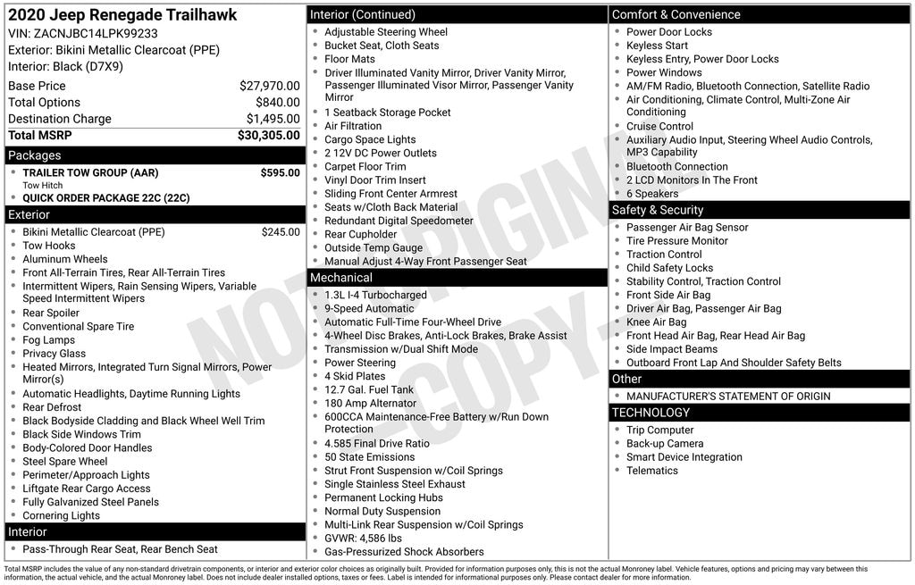 2020 Jeep Renegade Trailhawk Recent Arrival!