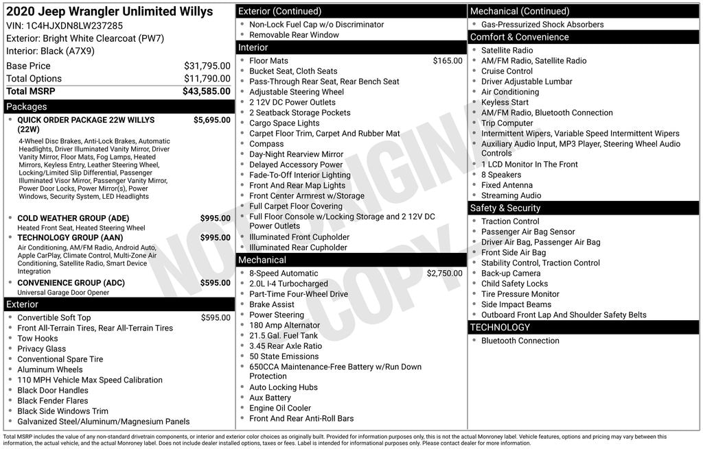 Pros: Fun- Convertible for Off Road and Northeast weather. Great Pentastar engine and Willies Package options Great Style and modern convenience of Bluetooth. Makes for a good commuter for backroads and bad weather. Our 7th Wrangler. Good/Bad: Tires and suspension on Willies Model is just want I wanted but ‘newbies’ beware of bouncing and veering as aggressive tread on tires pulls Jeep around. Not intended to drive highways at 90mph if you’re not experienced with off road tires etc. My wife loved her unlimited with longer wheelbase but did not want to drive 2 dr wrangler for these issues. Cons: I hate the default engine shut off in traffic/stops. Default “should” be to turn feature on. Doesn’t seem to save a dime on gas or improve MPG. Very disappointed with this. Otherwise- MPG not better than previous models Backseat is not for adults but then .... it’s a 2dr wrangler Did I mention engine shut off default is terrible?… - 5.0