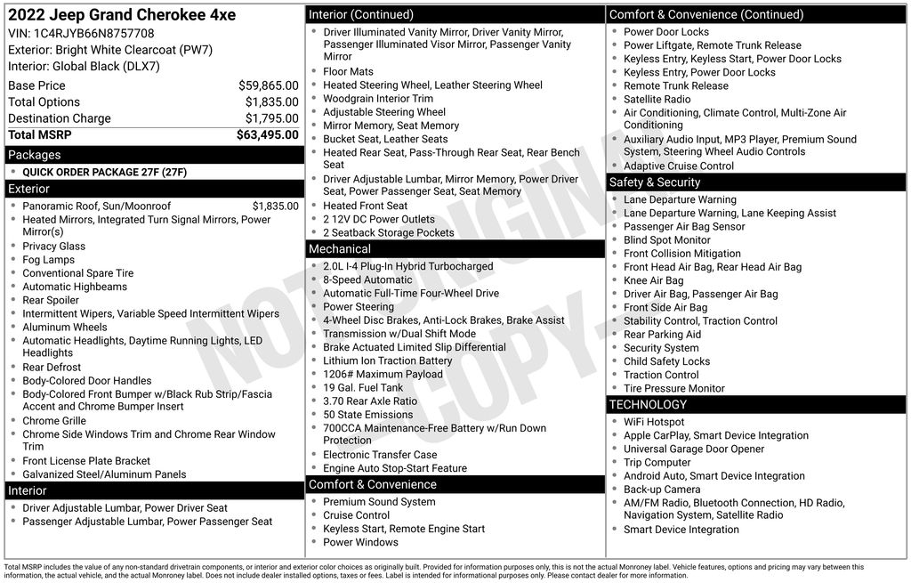 A Certified Pre Owned premium SUV, this 2022 Jeep Grand Cherokee 4xe offers a compelling mix of luxury, all-weather capability, and plug-in hybrid efficiency. Its elegant 4D Sport Utility body is draped in a crisp Bright White Clearcoat finish. With just 15,200 miles, this low-mileage, certified model delivers a quiet, refined ride and is positioned as a top-tier choice in the segment.