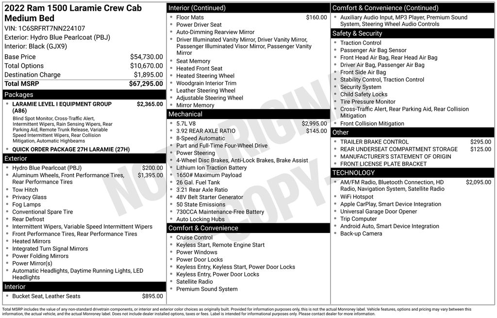 2022 Ram 1500 Laramie Truck Crew Cab V-8 cyl