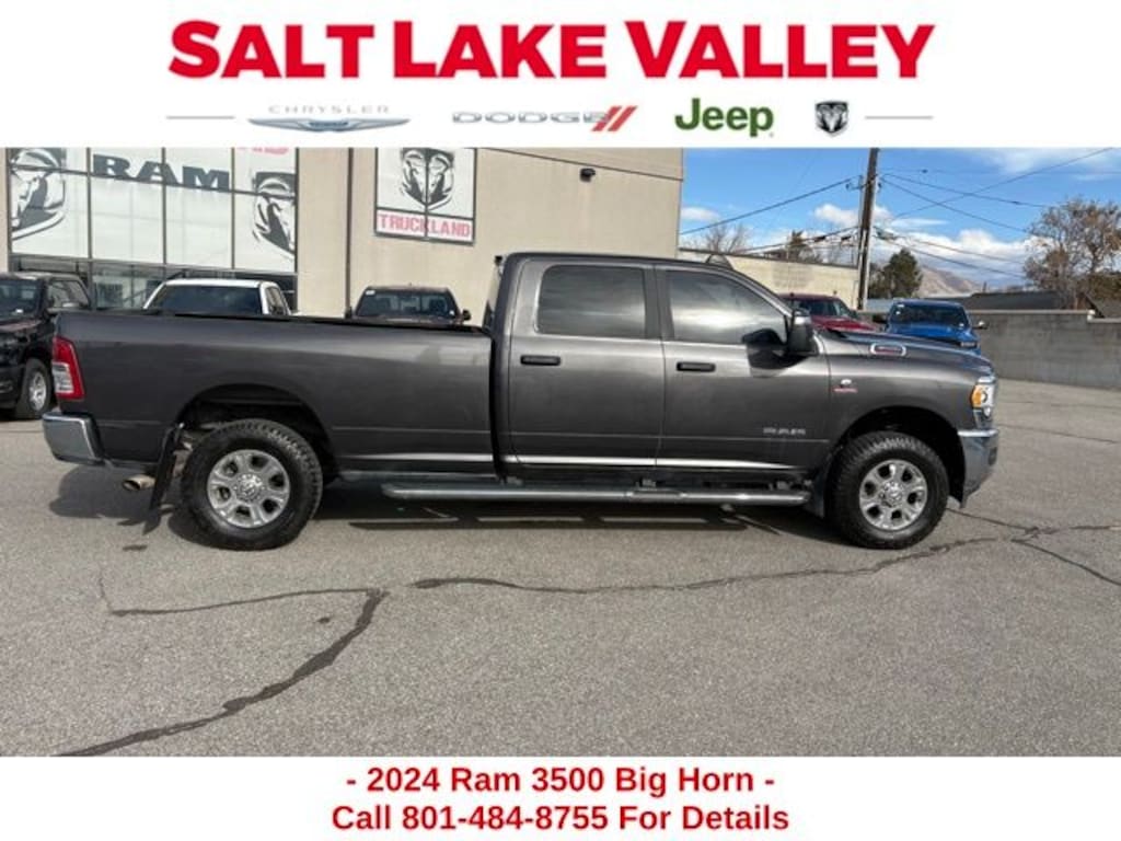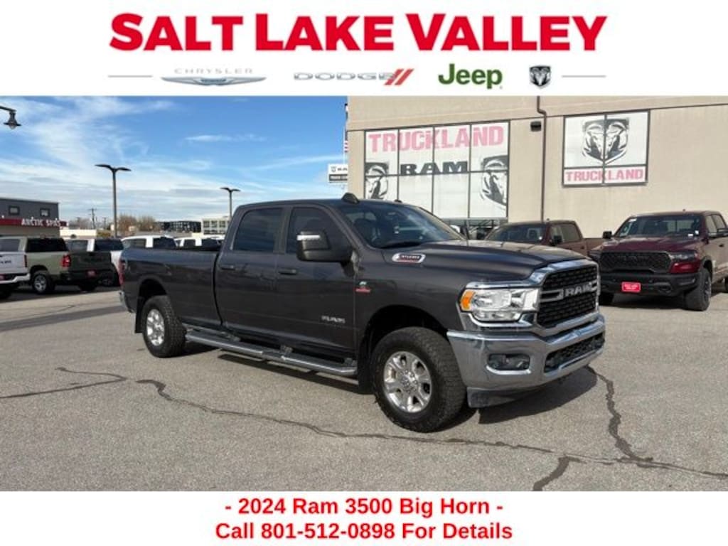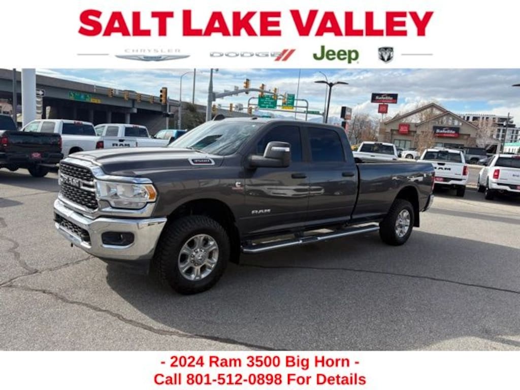 Get ready to hit the road in this Ram 3500, a standout choice for drivers looking for reliability, performance, and style! This impressive vehicle is packed with premium features designed to make every drive more enjoyable. Plus, youâll enjoy a $1,000 finance savings, already included in the sale price, when you finance through one of our trusted lending partners. Whether youâre searching for used cars in Salt Lake City, a dependable SUV, or a powerful truck, this Ram 3500 delivers everything you need and more. Visit Salt Lake Valley Chrysler Dodge Jeep Ram today to test drive or explore our entire selection of quality pre-owned vehicles. Donât wait - shop online at www.slvcdjr.com or call 801-484-8755 to learn more! This amazing vehicle comes loaded with options like Heated Seats & Wheel Group (Heated Front Seats, Heated Steering Wheel, Leather Wrapped Steering Wheel, and Steering Wheel Mounted Audio Controls), Level 1 Equipment Group (2 Way Rear Headrest Seat, 2nd Row In Floor Storage Bins, 4 Way Front Headrests, 40/20/40 Split Bench Seat, 4G LTE Wi-Fi Hot Spot, 8.4" Touchscreen Display, All R1 Low Radios, All Radio Equipped Vehicles, Apple CarPlay, Auto Power-Folding Mirrors, Black Exterior Mirrors, Bluetooth Handsfree Phone & Audio, Center Hub, Connectivity - US/Canada, Dual Glove Boxes, Exterior Mirrors Courtesy Lamps, Exterior Mirrors w/Heating Element, Exterior Mirrors w/Supplemental Signals, Foam Bottle Insert (Door Trim Panel), Footwell Courtesy Lamp, For Details Visit DriveUconnect.com, For More Info, Call 800-643-2112, Forward & Reverse Utility Lights, Front Armrest w/Cupholders, Front Center Seat Cushion Storage, Front Fog Lamps, Front Seat Back Map Pockets, Global Telematics Box Module (TBM), Glove Box Lamp, Google Android Auto, GPS Antenna Input, Integrated Center Stack Radio, Integrated Voice Command w/Bluetooth, Locking Lower Glove Box, Manual Adjust 4-Way Front Passenger Seat, Mirror Running Lights, Power Adjust 8-Way Driver Seat, Power Adjust Mirrors, Power Heated Fold Telescopic Mirrors, Power Telescoping Mirrors, Power-Adjustable Convex Aux Mirrors, Premium Cloth 40/20/40 Bench Seat, Rear 60/40 Folding Seat, Rear Dome w/On/Off Switch Lamp, Remote USB Port - Charge Only, Selectable Tire Fill Alert, SiriusXM Radio Service, SiriusXM Satellite Radio, Storage Tray, and Wheels: 18" x 8.0" Polished Aluminum), Quick Order Package 2HZ Big Horn, 115V Auxiliary Front Power Outlet, 220 Amp Alternator, 3.73 Axle Ratio, 4-Wheel Disc Brakes, 400W Inverter, 50 Gallon Fuel Tank, 5th Wheel/Gooseneck Towing Prep Group, 6 Speakers, 9 Alpine Speakers w/Subwoofer, ABS brakes, Active Noise Control System, Air Conditioning, Brake assist, Bumpers: chrome, Chrome Flat Wheel-to-Wheel Side Steps, Cloth 40/20/40 Bench Seat, Compass, CTR Stop Lamp w/Cargo View Camera, Delay-off headlights, Driver door bin, Dual front impact airbags, Dual front side impact airbags, Electronic Stability Control, Electronically Controlled Throttle, Emergency communication system: SiriusXM Guardian, Engine Block Heater, Exterior 115V AC Outlet, Front anti-roll bar, Front Center Armrest w/Storage, Front License Plate Bracket, Front reading lights, Fully automatic headlights, Heated door mirrors, Illuminated entry, Low tire pressure warning, Manual Adjust 4-Way Driver Seat, MOPAR Front & Rear Rubber Floor Mats, Occupant sensing airbag, Outside temperature display, Overhead airbag, Overhead console, Panic alarm, ParkSense Front/Rear Park Assist System, ParkView Rear Back-Up Camera, Passenger door bin, Passenger vanity mirror, Power door mirrors, Power steering, Power windows, Radio data system, Radio: Uconnect 3 w/5" Display, Radio: Uconnect 5 w/8.4" Display (DISC), Rear Folding Seat, Rear seat center armrest, Rear step bumper, Remote keyless entry, Remote Start System, Speed control, Tachometer, Tilt steering wheel, Tip Start, Traction control, Trip computer, Turn signal indicator mirrors, Variably intermittent wipers, Voltmeter, and Wheels: 18" x 8.0"