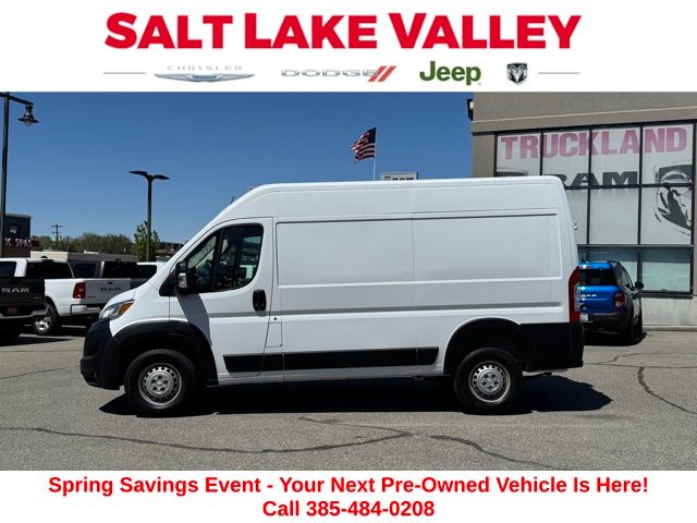 Get ready to hit the road in this Ram ProMaster 2500, a standout choice for drivers looking for reliability, performance, and style! This impressive vehicle is packed with premium features designed to make every drive more enjoyable. Price excludes tax, title, license fee, government fees, and $449 dealer documentary service fee. While every reasonable effort is made to ensure accuracy, we are not responsible for errors or omissions, and vehicles may be sold prior to inquiryâ"please contact the dealer to confirm availability. All financing is subject to approved credit. Whether youâre searching for used cars in Salt Lake City, a dependable SUV, or a powerful truck, this Ram ProMaster 2500 delivers everything you need and more. Visit Salt Lake Valley Chrysler Dodge Jeep Ram today to test drive or explore our entire selection of quality pre-owned vehicles. Donât wait - shop online at www.slvcdjr.com or call 801-484-8755 to learn more! This amazing vehicle comes loaded with options like Convenience Group (Exterior Mirrors w/Heating Element, Exterior Mirrors w/Supplemental Signals, Front Fog Lamps, Power Adjust Mirrors, Power Folding/Heated Mirrors, Power-Adjustable Convex Aux Mirrors, Power-Folding Mirrors, and Rear Cargo LED Lamp), Quick Order Package 22B Tradesman w/Pass Seat (4-Way Manual Adjust Front Passenger Seat and Passenger Bucket Seat), 4 Speakers, 4-Wheel Disc Brakes, 4.08 Axle Ratio, 4G LTE Wi-Fi Hotspot, ABS brakes, Adaptive Cruise Control w/Stop & Go, Air Conditioning, AM/FM radio: SiriusXM, Apple CarPlay, Apple CarPlay/Android Auto, Black/Gray Seats, Bodyside moldings, Brake assist, Cloth Bucket Seats, Connectivity - US/Canada, Driver door bin, Driver Seat Armrest, Driver's Seat Mounted Armrest, Electronic Stability Control, For Details, Visit DriveUconnect.com, For More Info, Call 800-643-2112, Front anti-roll bar, Front Bucket Seats, Front License Plate Bracket, Front reading lights, Front wheel independent suspension, Global Telematics Box Module (TBM), Google Android Auto, GPS Antenna Input, Heavy Duty Suspension, Illuminated entry, Low tire pressure warning, Manufacturer's Statement of Origin, Outside temperature display, Overhead airbag, Overhead console, ParkView Rear Back-Up Camera, Passenger door bin, Power steering, Power windows, Radio: Uconnect 5 w/7" Display, Remote keyless entry, SiriusXM Radio Service, Steering wheel mounted audio controls, Tachometer, Telescoping steering wheel, Traction control, Trip computer, Turn signal indicator mirrors, Variably intermittent wipers, Wheel Center Cap, and Wheels: 16" x 6.0" Steel, making it the perfect choice for your next adventure.