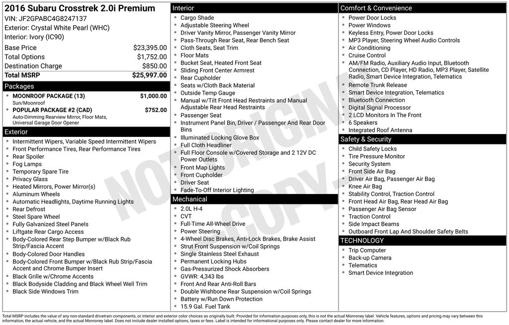 2016 Subaru Crosstrek 2.0i Premium