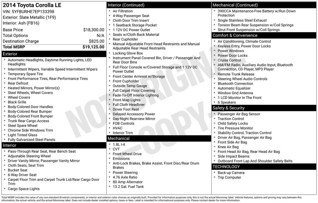 2014 Toyota Corolla LE Recent Arrival!