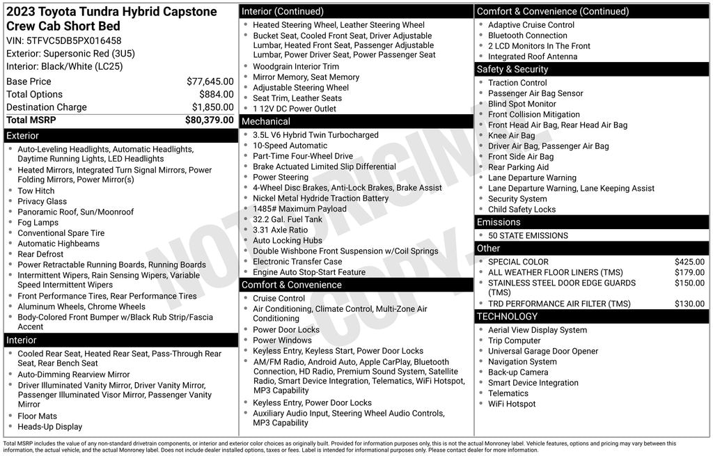 Used 2023 ToyotaTundra Hybrid Capstone Truck CrewMax V-6 cyl