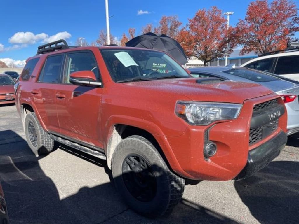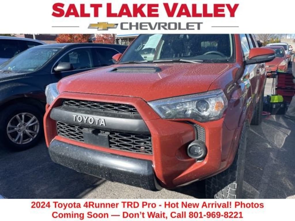 Turn every drive into something special with this Toyota 4Runner from Salt Lake Valley Chevrolet! Designed for comfort, performance, and style, this vehicle comes fully equipped with modern technology and convenience features youâll love. Plus, enjoy a $1,000 finance savings, already included in the sale price, when you finance through one of our trusted lending partners. If youâre shopping for used cars in Salt Lake City, or searching for the perfect SUV, truck, or sedan, this Toyota 4Runner delivers the dependability and value youâre looking for. Itâs the ideal match for your lifestyle - ready for everything from mountain adventures to city commutes. Visit Salt Lake Valley Chevrolet today and see why so many Utah drivers trust us for great deals on quality pre-owned vehicles. Explore our inventory online at www.slvchevy.com or call 801-969-8221 to schedule your test drive today! This impressive vehicle includes 15 Speakers, 3.727 Axle Ratio, 4-Wheel Disc Brakes, ABS brakes, Air Conditioning, Alloy wheels, AM/FM radio: SiriusXM, Anti-whiplash front head restraints, Apple CarPlay/Android Auto, Auto High-beam Headlights, Auto-dimming Rear-View mirror, Automatic temperature control, Black Lug Nuts, Brake assist, Bumpers: body-color, Compass, Driver door bin, Driver vanity mirror, Dual front impact airbags, Dual front side impact airbags, Dual Zone Auto Climate Control, Electronic Stability Control, Emergency communication system: Safety Connect (1-year trial), Exterior Parking Camera Rear, Fog Lights, Fox Shocks, Front anti-roll bar, Front Bucket Seats, Front Center Armrest, Front dual zone A/C, Front fog lights, Front reading lights, Front wheel independent suspension, Garage Door Opener, Garage door transmitter: HomeLink, Heated door mirrors, Heated Front Bucket Seats, Heated front seats, Heated Outside Rear-View Mirrors, Heated steering wheel, Illuminated entry, Knee airbag, Leather Shift Knob, Low tire pressure warning, Moonroof w/Tilt Up & Slide, Multi-Terrain Back Monitor, Navigation System, Occupant sensing airbag, Outside temperature display, Overhead airbag, Overhead console, Panic alarm, Passenger door bin, Passenger vanity mirror, Power door mirrors, Power driver seat, Power moonroof, Power passenger seat, Power steering, Power windows, Radio: Premium Audio w/JBL, Rear anti-roll bar, Rear seat center armrest, Rear window defroster, Rear window wiper, Remote keyless entry, Roof rack, Roof Rack, Security system, SofTex Seat Trim, Speed control, Speed-sensing steering, Split folding rear seat, Spoiler, Steering wheel mounted audio controls, Tachometer, Telescoping steering wheel, Tilt steering wheel, Traction control, TRD Pro All Weather Floor Liner, TRD Pro Badging, TRD Pro Exhaust, TRD Shift Knob, Trip computer, Variably intermittent wipers, Wheel Locks, and Wheels: 17 Matte Black Flow-Formed TRD Alloy, offering everything you need for your next adventure.Odometer is 8795 miles below market average!CARFAX One-Owner.Clean CARFAX.