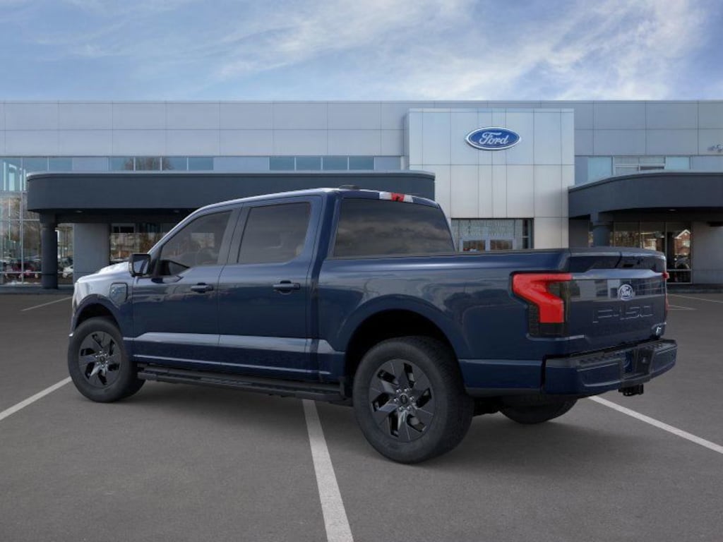 This 2025 Antimatter Blue Metallic Ford F-150 Lightning Flash AWD is well equipped and includes these features and benefits: 4-Wheel Disc Brakes, 8 Speakers, ABS brakes, ActiveX Trimmed Heated Front Seats, Adjustable pedals, Air Conditioning, Alloy wheels, Auto High-beam Headlights, Auto-dimming Rear-View mirror, Automatic temperature control, Brake assist, Bumpers: body-color, Compass, Delay-off headlights, Driver door bin, Driver vanity mirror, Dual front impact airbags, Dual front side impact airbags, Electronic Stability Control, Emergency communication system: SYNC 4 911 Assist, Four wheel independent suspension, Front anti-roll bar, Front Bucket Seats, Front Center Armrest, Front dual zone A/C, Front reading lights, Fully automatic headlights, Heated door mirrors, Heated front seats, Heated steering wheel, Illuminated entry, Knee airbag, Low tire pressure warning, Navigation system: Connected Navigation, Occupant sensing airbag, Outside temperature display, Overhead airbag, Overhead console, Panic alarm, Passenger door bin, Passenger vanity mirror, Power door mirrors, Power driver seat, Power passenger seat, Power steering, Power windows, Radio data system, Radio: B&O Sound System by Bang & Olufsen, Rear anti-roll bar, Rear reading lights, Rear step bumper, Rear window defroster, Remote keyless entry, Security system, Speed control, Speed-sensing steering, Split folding rear seat, Steering wheel mounted audio controls, SYNC 4A w/Enhanced Voice Recognition, Telescoping steering wheel, Tilt steering wheel, Traction control, Trip computer, Turn signal indicator mirrors, Variably intermittent wipers, and Wheels: 20" Alloy Dark Carbonized Gray.