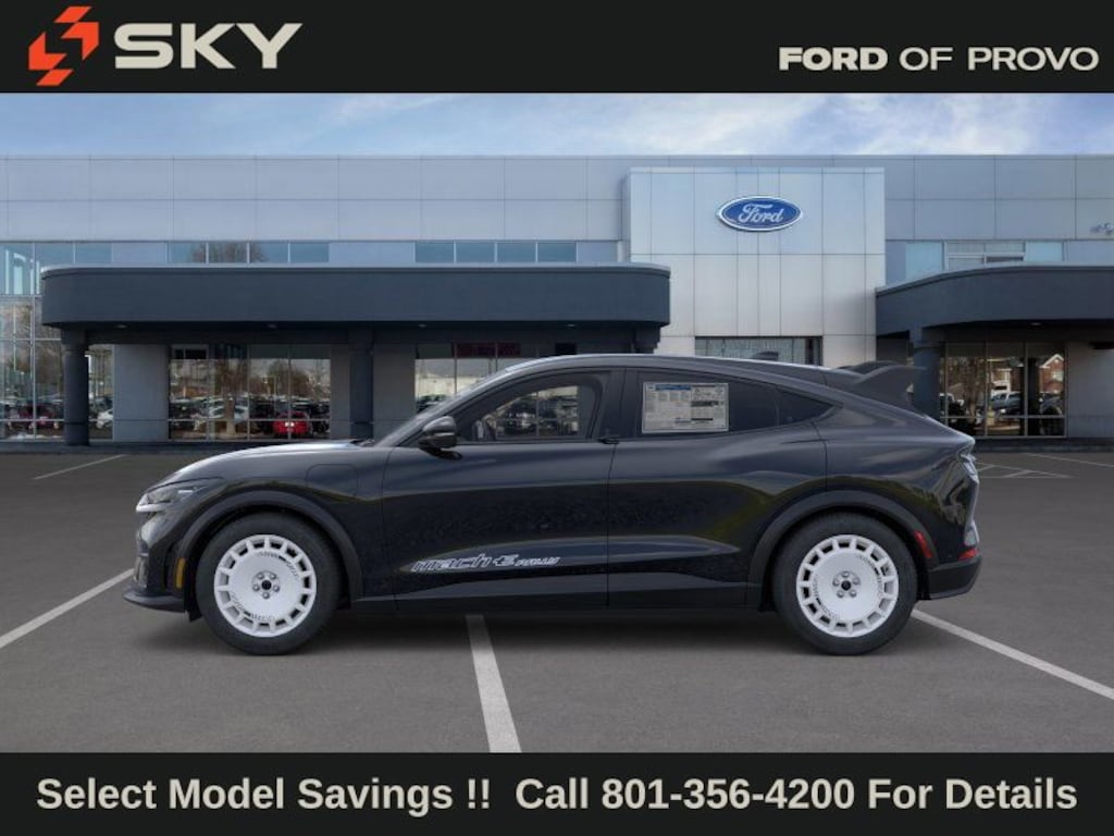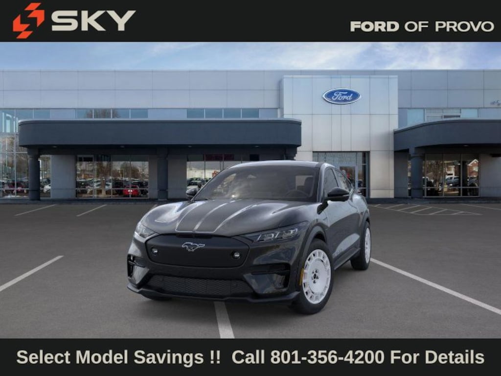 This 2025 Shadow Black Ford Mustang Mach-E GT AWD is well equipped and includes these features and benefits: Equipment Group 400A Standard Package, Mustang Mach-E Rally (Black Painted Steel Roof, Door, Wheel, Roof & Bumper Trim, Ford Performance Front Seats, Hood & Decklid Stripes, Mach-E Rally Door Graphics, Mustang Mach-E GT Performance Upgrade, Oxford White Steering Wheel/Door/IP Interior Trim, Rallycross-Tuned MagneRide Damping System, RallySport Drive Mode, Sport Pedals, Unique Front Splitter in Dark Carbonized Gray, Unique Grille Shield in Dark Carbonized Gray, Unique Raised Rear Spoiler in Dark Carbonized Gray, and Wheels: 19" High Gloss Oxford White), 10 Speakers, 4-Wheel Disc Brakes, ABS brakes, Adaptive suspension, Air Conditioning, Alloy wheels, AM/FM radio: SiriusXM with 360L, Apple CarPlay/Android Auto, Auto High-beam Headlights, Auto-dimming Rear-View mirror, Automatic temperature control, Brake assist, Bumpers: body-color, Compass, Delay-off headlights, Driver door bin, Driver vanity mirror, Dual front impact airbags, Dual front side impact airbags, Electronic Stability Control, Emergency communication system: 911 Assist, Exterior Parking Camera Rear, Four wheel independent suspension, Front anti-roll bar, Front Bucket Seats, Front Center Armrest, Front dual zone A/C, Front License Plate Bracket, Front reading lights, Fully automatic headlights, Garage door transmitter, Heated door mirrors, Heated front seats, Heated Perforated ActiveX Performance Seats, Heated steering wheel, Hood & Decklid Stripe/Door Graphics Delete, Illuminated entry, Knee airbag, Low tire pressure warning, Memory seat, Mobile Power Cord (120V/240V), Navigation system: Connected Navigation, Occupant sensing airbag, Outside temperature display, Overhead airbag, Overhead console, Panic alarm, Passenger door bin, Passenger vanity mirror, Power door mirrors, Power driver seat, Power Liftgate, Power passenger seat, Power steering, Power windows, Radio data system, Radio: B&O Sound System by Bang & Olufsen, Rain sensing wipers, Rear anti-roll bar, Rear seat center armrest, Rear side impact airbag, Rear window defroster, Rear window wiper, Remote keyless entry, Security system, SiriusXM w/360L, Speed control, Speed-sensing steering, Speed-Sensitive Wipers, Split folding rear seat, Spoiler, Steering wheel mounted audio controls, SYNC 4A w/Enhanced Voice Recognition, Telescoping steering wheel, Tilt steering wheel, Traction control, Trip computer, Turn signal indicator mirrors, Variably intermittent wipers, and Wheels: 20" Monochromatic High Gloss Black-Painted.